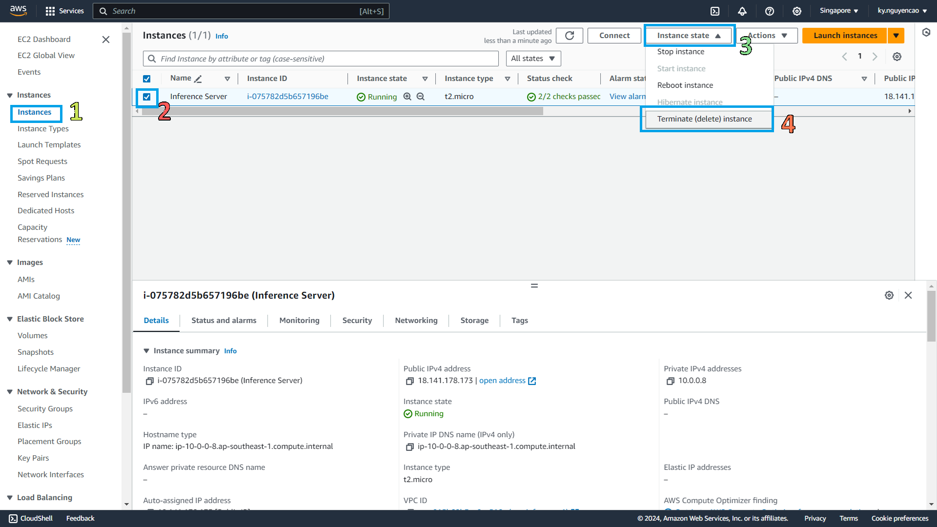 - Select Terminate Instance.