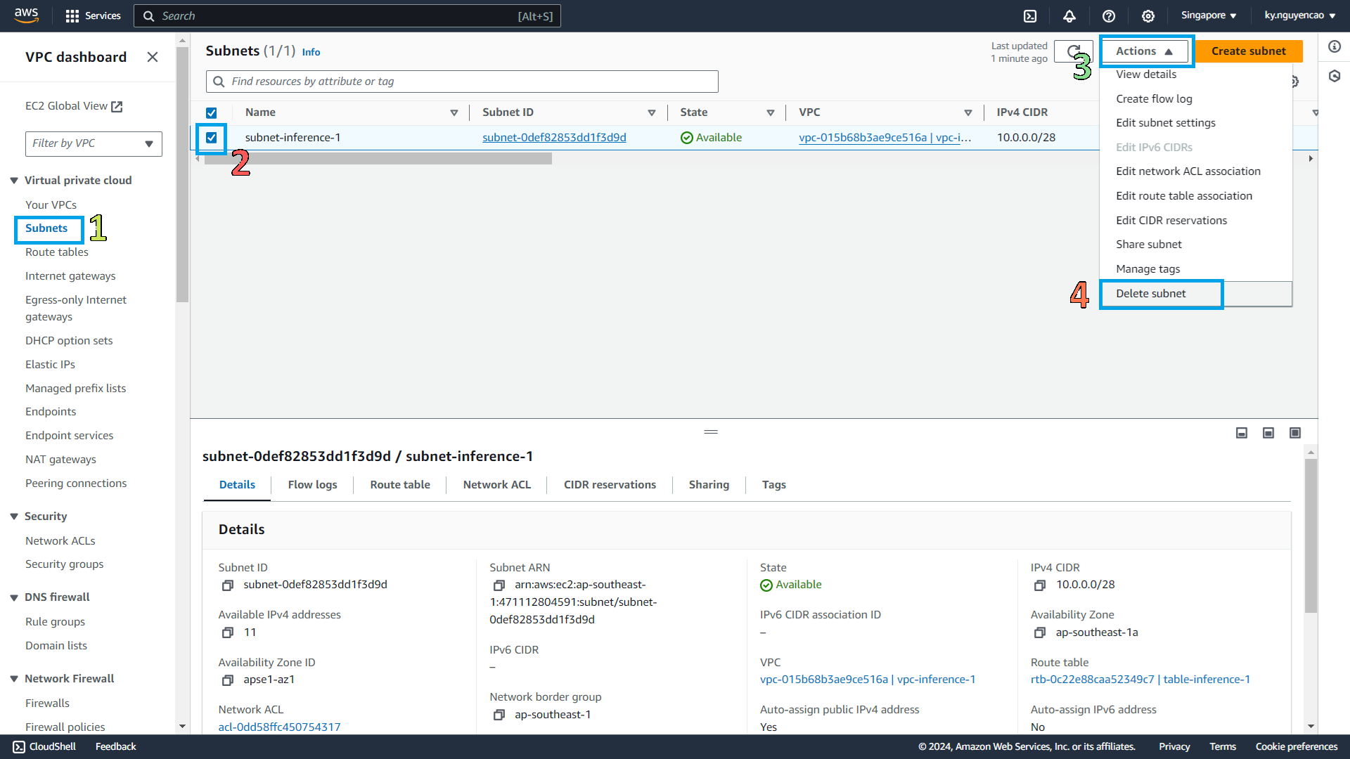 subnet-inference-1. - Select Actions.