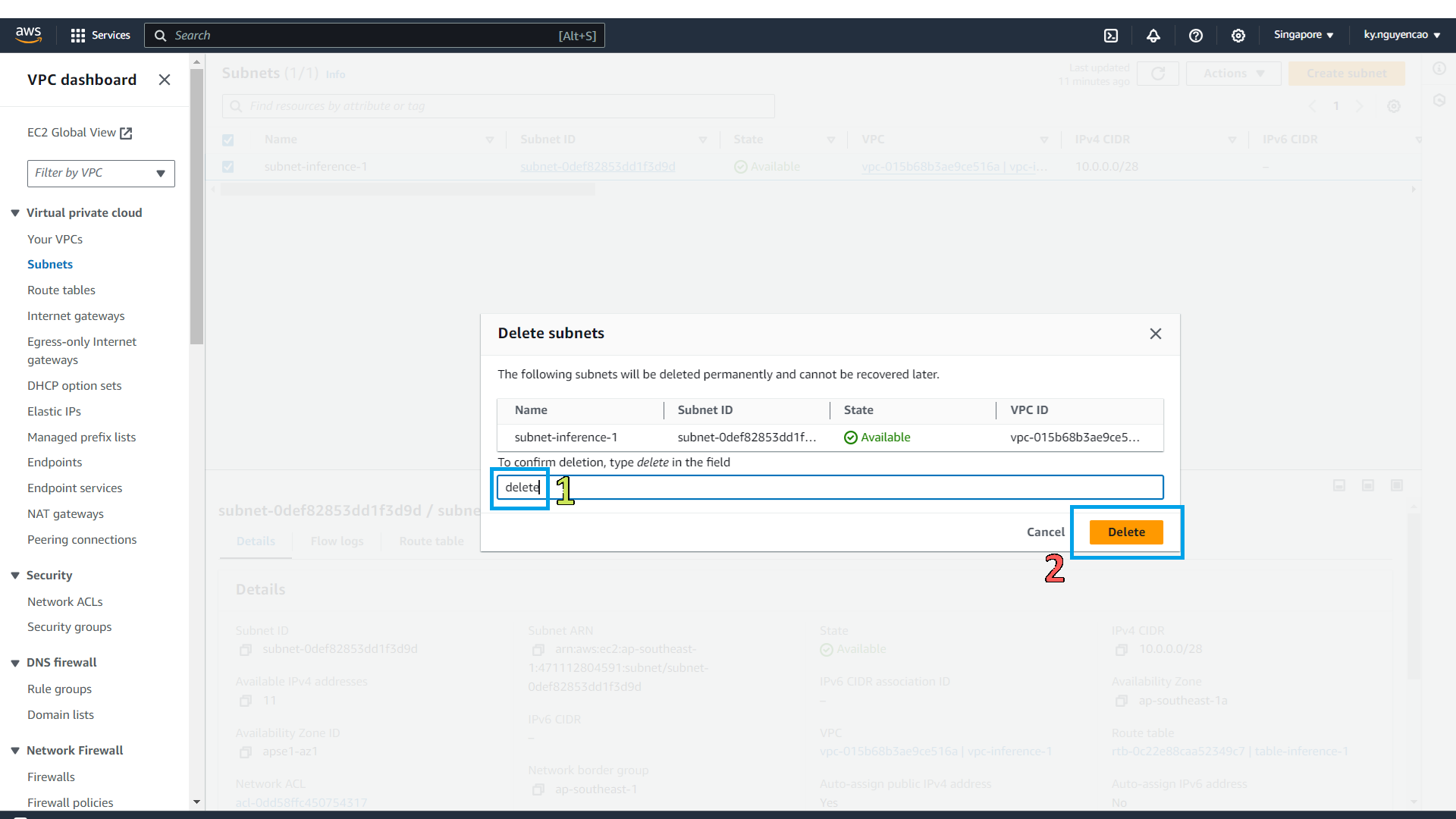 - Select Delete Subnet.